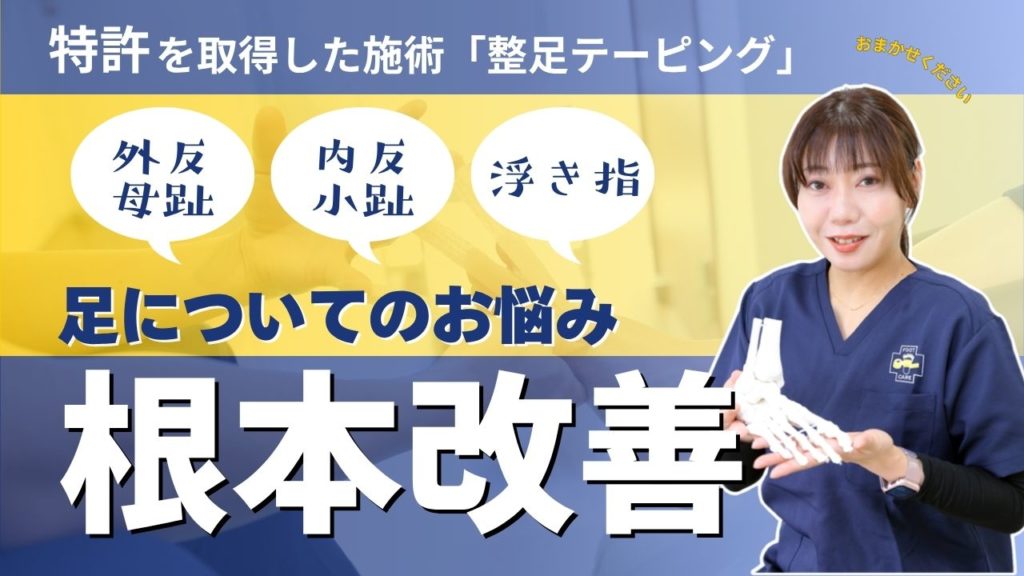 高城駅より徒歩4分で、イオン高城目の前!これまで多くの足のトラブルに向き合ってきたスタッフが在籍し、外反母趾・内反小趾・浮き指など幅広い足のお悩みに対応いたします。特許取得の独自テーピング技術で、痛みの原因からしっかり改善!