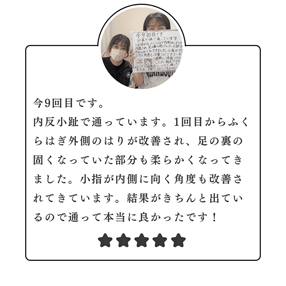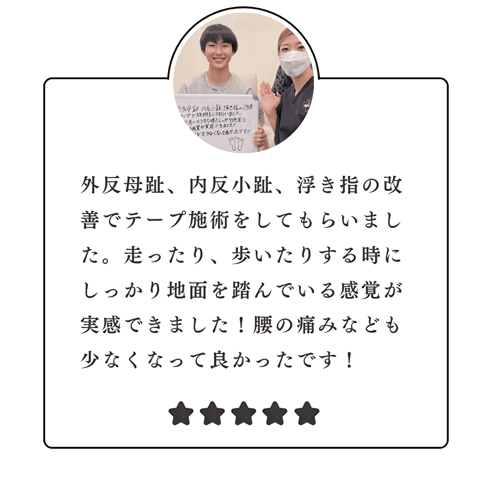 足の機能を正常化させることで、外反母趾の痛みが軽くなります。